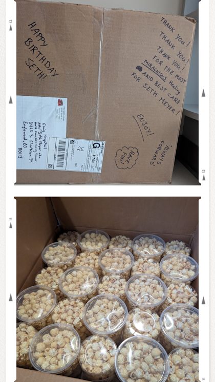 Friday- I flew in late last night so I surprised Seth in his room. He was thrilled! Mom and Seth went to the foot doctor in the morning where the staples were removed and he was casted for AFOs (Ankle & Foot Orthotics). One more week and they can do more weight bearing therapies, as tolerated. For lunch, Craig had food truck Friday! We said, “We’ll take one of everything!” The bummer of Friday was that the aquarium outing was cancelled for the second time at the very last minute due to the stat drain needing to be put in (it was cancelled the first time on his birthday due to some other health issues).